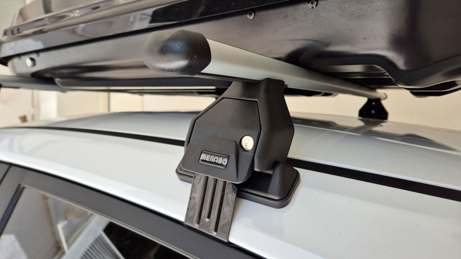 Η τοποθέτηση της μπαγκαζιέρας είναι υπόθεση 5 λεπτών και δεν απαιτείται δεύτερο άτομο στην όλη διαδικασία. Με τις μπάρες τοποθετημένες στο αυτοκίνητο, ακουμπάς την μπαγκαζιέρα η οποία ζυγίζει μόλις 14,2 κιλά, επάνω σε αυτές, την κεντράρεις και ύστερα απλώς την κουμπώνεις συρταρωτά στις αναμονές. Μετά ανοίγοντας το καπάκι θα βρεις μέσα τις 4 ροδέλες του Quick Mounting System, τις οποίες σφίγγεις πολύ εύκολα με το χέρι καθώς έχουν αρκετά μεγάλη διάμετρο, δίνοντάς σου τον κατάλληλο μοχλό, ώστε να μην χρειαστεί να βάλεις πολλή δύναμη. Το υλικό κατασκευής της είναι σκληρυμένο, ανθεκτικό πλαστικό ABS, το οποίο έχει περαστεί με επίστρωση που προσφέρει προστασία από την UV ακτινοβολία στο επάνω μέρος, ενώ το μοντέλο που δοκιμάσαμε έχει ένα γυαλιστερό μαύρο φινίρισμα. Φυσικά εάν διαθέτεις ήδη μπάρες άλλης εταιρείας, μπορείς να προμηθευτείς ξεχωριστά τους γάντζους L Quick Fix Hooks System 8250/MB, που σου επιτρέπουν να έχεις Universal πρόσδεση. Οι γάντζοι αυτοί μαγκώνουν επάνω σε μπάρες με μέγιστες διαστάσεις 80×35 χιλιοστά, προσφέροντας το ίδιο σίγουρο κράτημα.