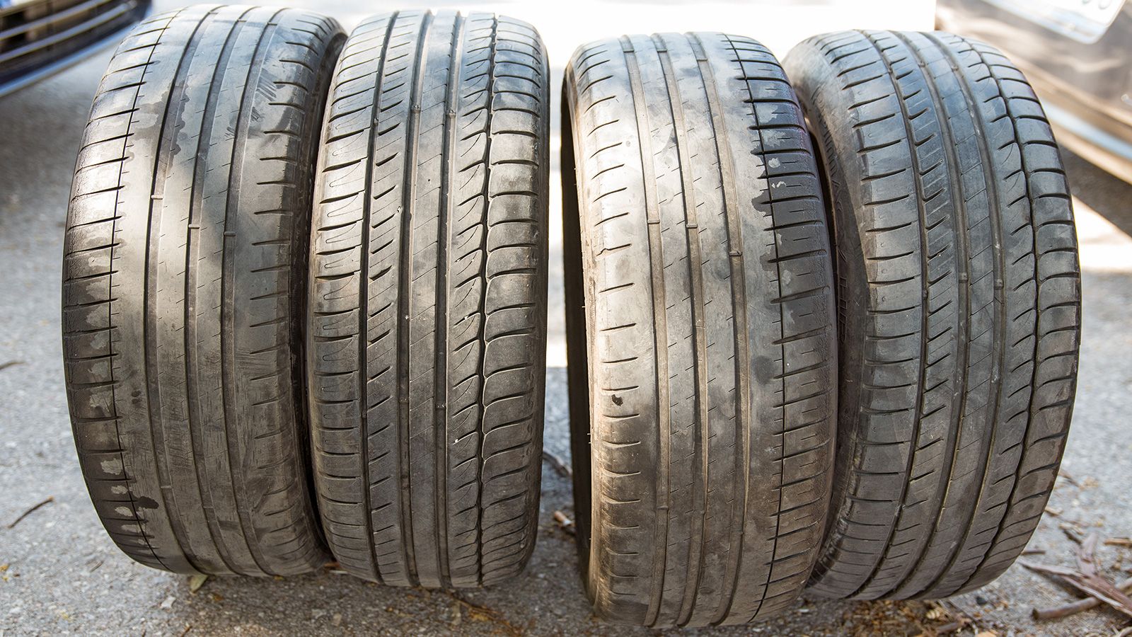 Εμφανής και με το μάτι η φθορά των ελαστικών με βάθος πέλματος 1,6 χλστ. Μέχρι πριν μια βδομάδα κάποιος κυκλοφορούσε με αυτά στο δρόμο! Στην Ελλάδα περνάς ΚΤΕΟ! Έλεος!