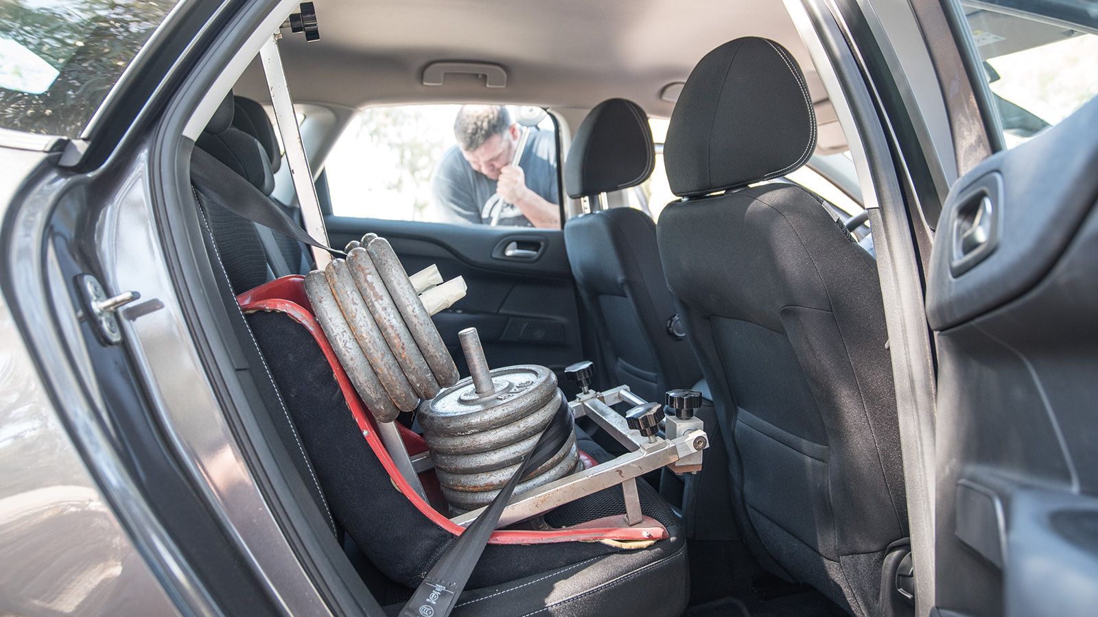 Για τις μετρήσεις με βάρος 350 κιλών επιστρατεύσαμε τον «Λυκούργο» το ειδικό μηχανισμό για τις μετρήσεις χώρων (75 κιλά) και συμπληρώσαμε το βάρος του οδηγού με σακιά γεμάτα άμμο.