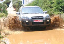 Ηyundai Tucson Το Tucson δεν προσφέρεται για extreme εξορμήσεις σε δύσβατες περιοχές, αφού οι αναρτήσεις δεν έχουν τις κατάλληλες -μακριές- διαδρομές και αν υπολογίσουμε και το χαμηλά τοποθετημένο καζανάκι του ρεζερβουάρ που βρίσκει σχετικά εύκολα στο έδαφος, τότε τα πράγματα δυσκολεύουν. Πάντως το σύστημα τετρακίνησης επιδεικνύει πολύ καλά χαρακτηριστικά αλλά δυστυχώς η συνεργασία του με τον μαλακό και αδύναμο συμπλέκτη δεν το βοηθάει να σκαρφαλώσει σε κακοτράχαλα μέρη αφού κουράζεται σχετικά νωρίς.