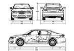 Το συνολικό μήκος του νέου Saab 9-5 είναι πραγματικά σεβαστό και φτάνει στα 5.008 χιλιοστά. Το πλάτος του φτάνει στα 1.868 χλστ., ενώ το μεταξόνιό του είναι 2.837 χλστ. Παρατηρούμε λοιπόν, ότι το νέο μοντέλο είναι αρκετά μακρύτερο από το σημερινό κατά 173 χλστ. (4.835 χλστ.), ενώ έχει και πιο μεγάλο μεταξόνιο κατά 132 χιλιοστά (2.705 χλστ.).