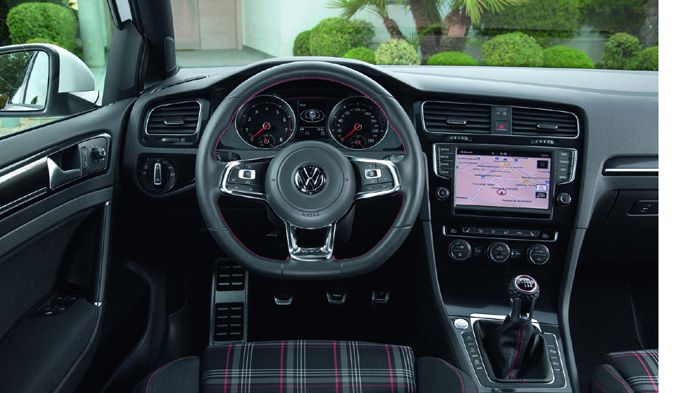 Επίσης η Volkswagen δήλωσε ότι θα τηρηθεί και πάλι η παράδοση για το καρό μοτίβο (“Clark”) στην ταπετσαρία, ενώ ο ουρανός είναι μαύρος και υπάρχει κόκκινος κρυφός φωτισμός. Κόκκινος είναι και ο φωτισμός του πίνακα οργάνων, ενώ υπάρχει σπορ τιμόνι και λεβιές με τα διακριτικά GTI, διακοσμητικά σιρίτια περιμετρικά και αλουμινένια επένδυση σε πεντάλ και footrest.