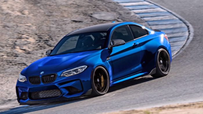 Η ψηφιακά επεξεργασμένη εικόνα βασίζεται σε καμουφλαρισμένο μοντέλο εντός πίστας και μας δίνει μια πολύ καλή γεύση πριν την αποκάλυψη της BMW M2 CS.