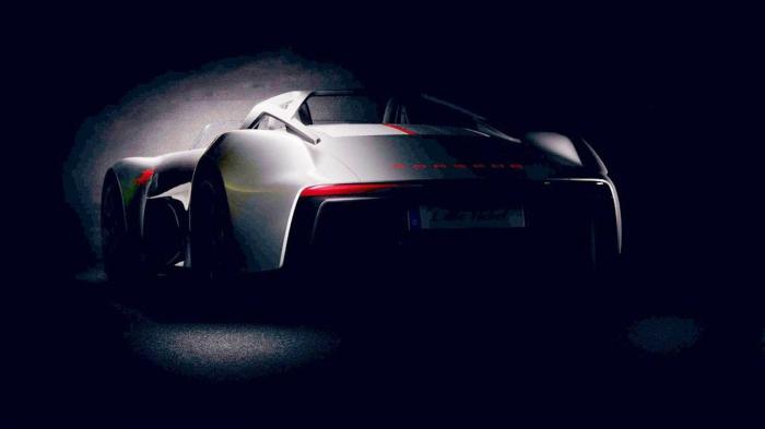 Για να φτάσουμε στον παραπάνω συλλογισμό συνηγόρησε και το γεγονός πως το αμάξωμα, κυρίως ο σχεδιασμός των φτερών, φαίνεται παρόμοιο με αυτόν της Porsche 550 Spyder. Από κει και πέρα σο πίσω μέρος βλέπουμε να έχουν τοποθετηθεί λεπτά φωτιστικά σώματα, ενώ πιο κάτω πιθανότατα κρύβεται κάποιος αεροδυναμικός διαχύτης, παρόμοιο με αυτόν στην Porsche 935.