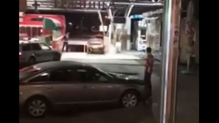 Περιπολικό καταδιώκει ένα Peugeot 205 με νεαρό οδηγό και όταν οι αστυνομικοί πιστεύουν ότι τον έκλεισαν, ξεφεύγει από τις σκάλες σε μια α λα "The Italian Job" σκηνή.