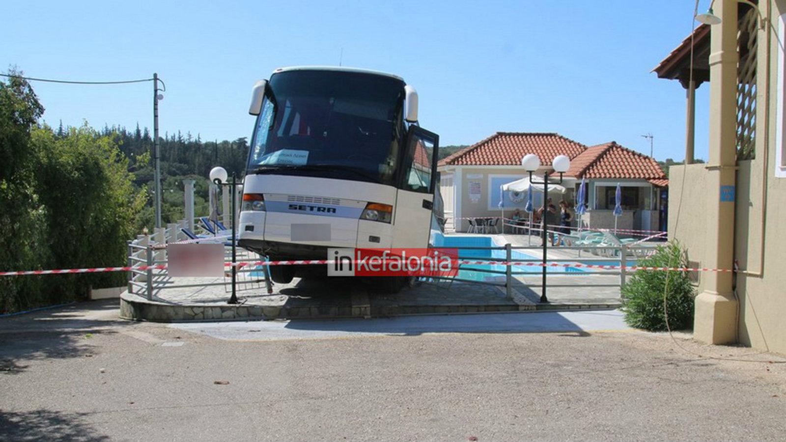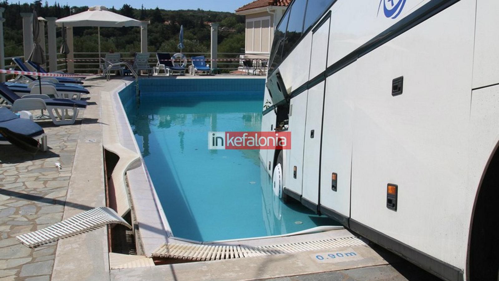 Τουριστικό λεωφορείο από την Σητεία της Κρήτης βρέθηκε να «κολυμπάει» μέσα σε πισίνα ενός ξενοδοχείου στα Τραυλιάτα της Κεφαλονιάς.