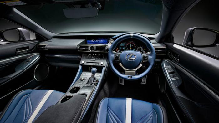 Επιπλέον, η Limited Edition της RC F διαθέτει επιφάνειες από ανθρακονήματα στην οροφή, στο μπροστινό μέρος, στο πλάι, καθώς επίσης και στον πίσω προφυλακτήρα, πράγμα που την καθιστά πολύ πιο δυναμική από το κλασσικό μοντέλο. Εσωτερικά διαθέτει μπλε δερμάτινα καθίσματα, τιμόνι και λεβιέ ταχυτήτων. Το ίδιο περίπου εσωτερικό συναντάμε και στην GS F.