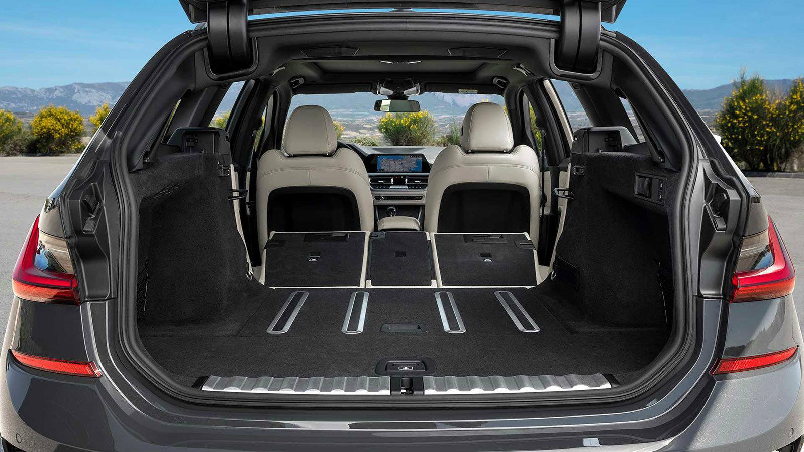 Η πόρτα του χώρου αποσκευών της νέας BMW Σειρά 3 Touring έχει τη δυνατότητα να ανοίγει αυτόματα, ενώ η χωρητικότητα του διαμερίσματος αποσκευών ορίζεται στα 500 λτ. (+5 λτ.) και στα 1.510 λίτρα με τα πίσω καθίσματα πεσμένα, έχοντας επωφεληθεί από την αύξηση του πλάτους κατά 11,2 εκατοστά. Επιπλέον, μεγαλύτερο είναι και το πίσω τζάμι για καλύτερη ορατότητα προς τα πίσω.