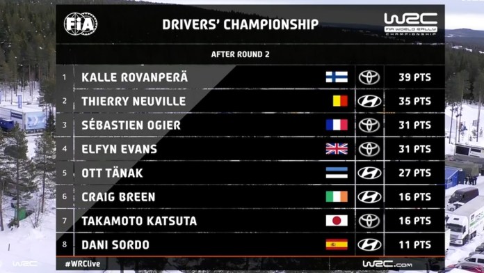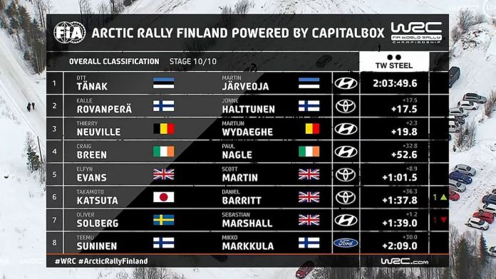 Τη νίκη του στο πρώτο Arctic Rally στην ιστορία της διοργάνωσης πήρε εύκολα ο Ott Τanak, ωστόσο τα τελικά αποτελέσματα έφεραν τον Rovanpera στην κορυφή της βαθμολογίων των Οδηγών, γεγονός που τον έκανε τον νεαρότερο οδηγό που φτάνει στην πρώτη θέση της βαθμολογίας.