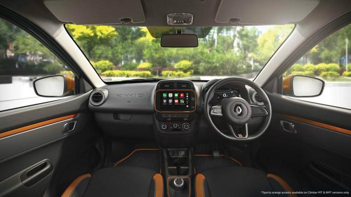 Το ανανεωμένο Kwid εξοπλίζεται τώρα με μια μεγαλύτερη 8 ιντσών οθόνη για το σύστημα infotainment MediaNav Εvolution και έναν ψηφιακό πίνακα οργάνων παρμένα και τα δύο από το Renault Triber. To σύστημα infotainment είναι συμβατό με Android Auto και Apple CarPlay ενώ στον εξοπλισμό περιλαμβάνεται και μια κάμερα οπισθοπορείας, νέο τιμόνι, καινούριο επιλογέα ταχυτήτων και πιο ποιοτικό φινίρισμα στις θύρες και στο ταμπλό.