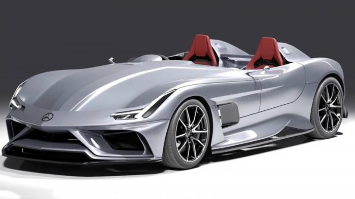 Όπως μπορούμε να δούμε ο καλλιτέχνης έχει διατηρήσει τα βασικά στοιχεία της αρχική Mercedes, όπως η απουσία οροφής αλλά και αυτή του παρμπρίζ. Από κει και πέρα έχει όλο το υπόλοιπο αμάξωμα έχει σχεδιαστεί με βάση το σήμερα. Το μπροστινό μέρος κοσμείται από μεγάλες εισόδους αέρα και πολλά επιμέρους αεροδυναμικά χαρακτηριστικά που είναι προσαρμοσμένα στον προφυλακτήρα. Τα φωτιστικά σώματα είναι μας θυμίζουν το αγγλικό γράμμα L, ενώ το μακρύ καπό καταλήγει στο διθέσιο εσωτερικό. Το πίσω μέρος έχει λιγότερες γωνίες που περιορίζονται στον αεροδυναμικό διαχύτη, ενώ τον ρόλο των φωτιστικών σωμάτων αποτελεί μία λεπτή LED γραμμή. Highlight οι απολήξεις της εξάτμισης που βρίσκονται πίσω από τα μπροστινά φτερά.