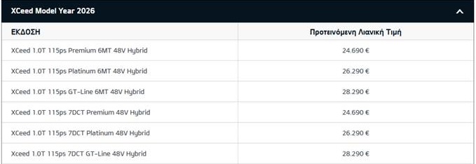 Αναλυτικά οι τιμές για το XCeed 1.0Τ