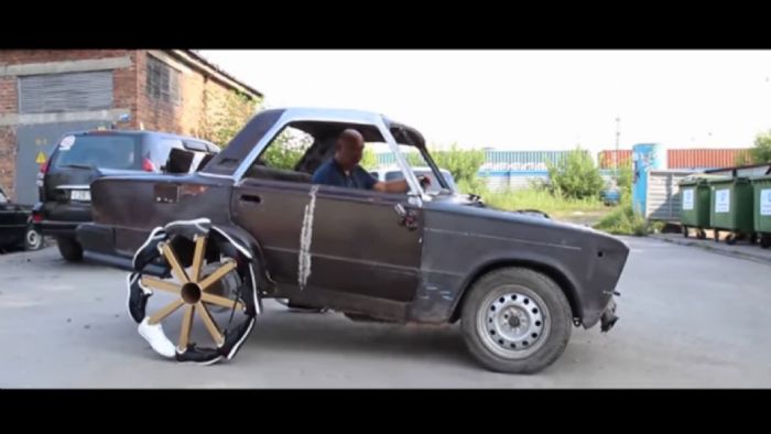 Αυτή την ιδέα είχαν κάποιοι «τρελοί» Ρώσοι, οι οποίοι κατασκεύασαν και εγκατέστησαν σε ένα αυτοκίνητο τους συγκεκριμένους τροχούς, καταγράφοντας το εγχείρημά τους σε βίντεο το οποίο προβάλουμε πιο κάτω.